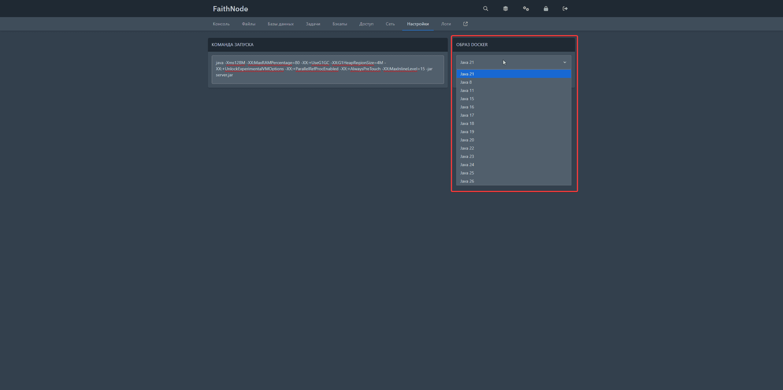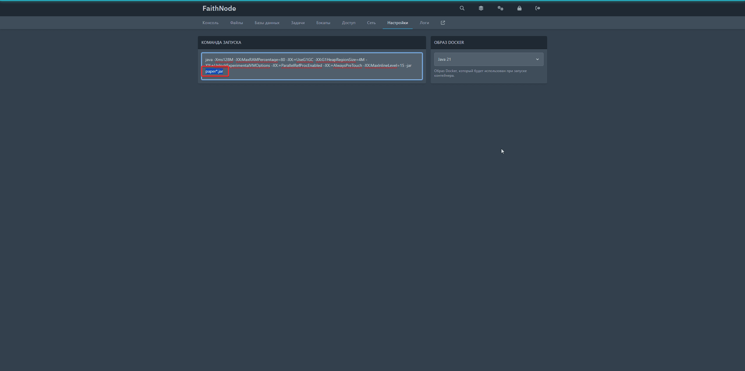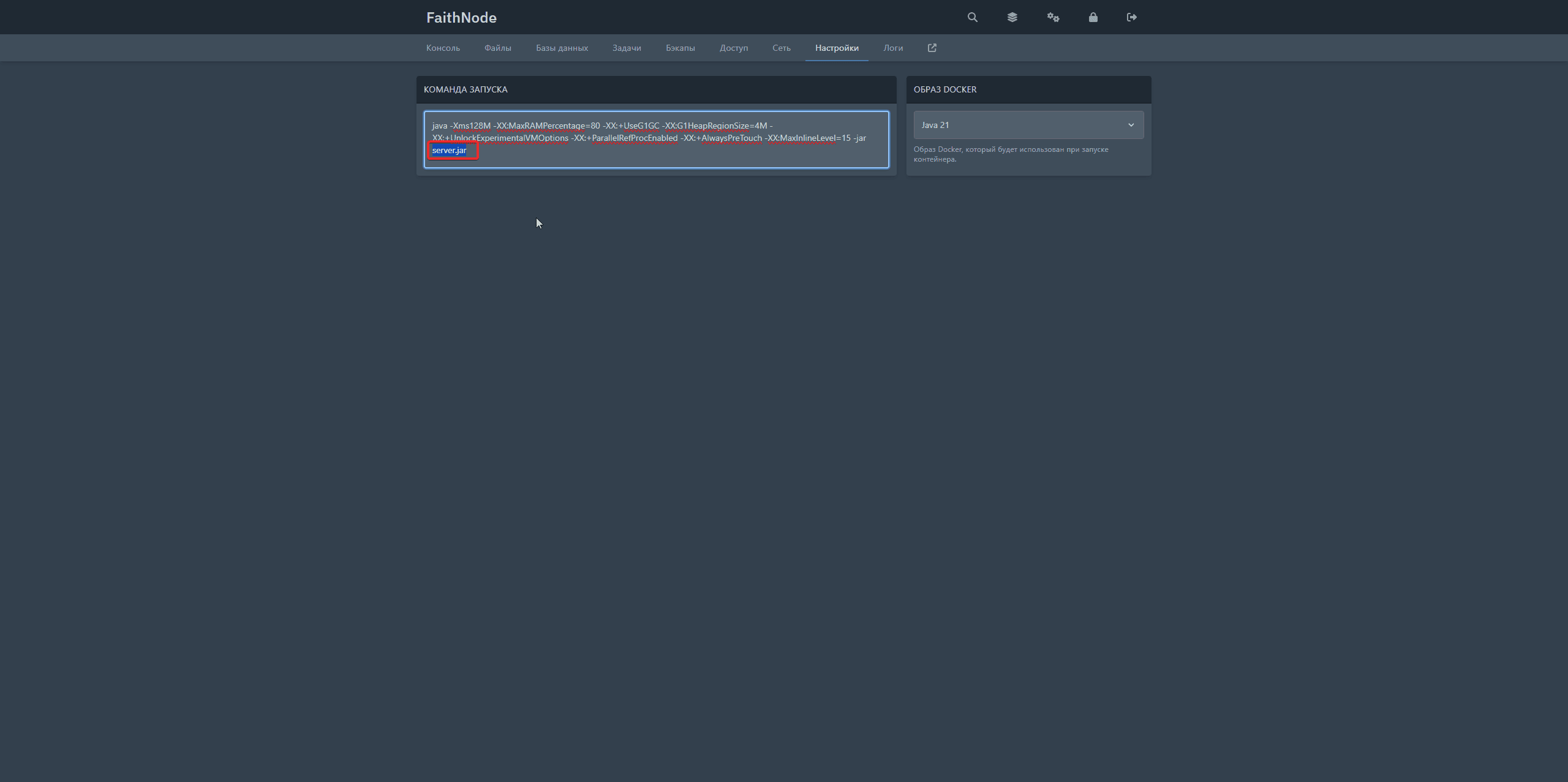 5. Поменяйте название ядра в команде запуска во вкладке "Настройки" на server.jar: