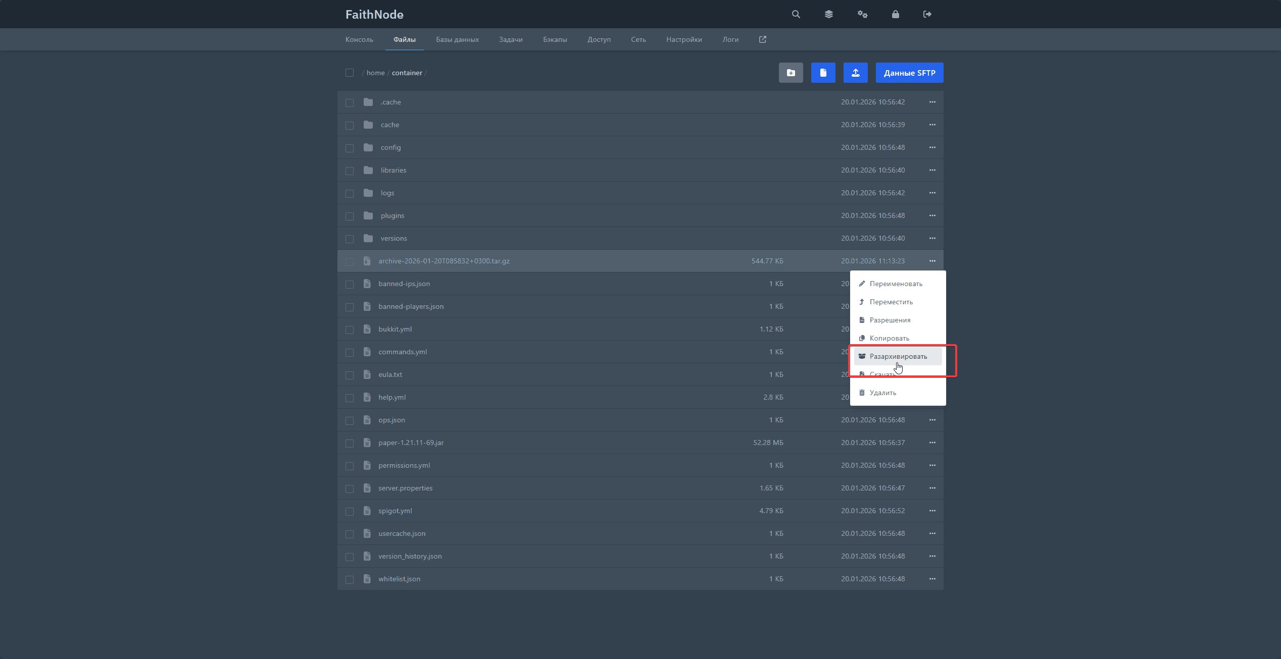 После удаления миров, нужно перенести наш созданый архив из пункта 1.