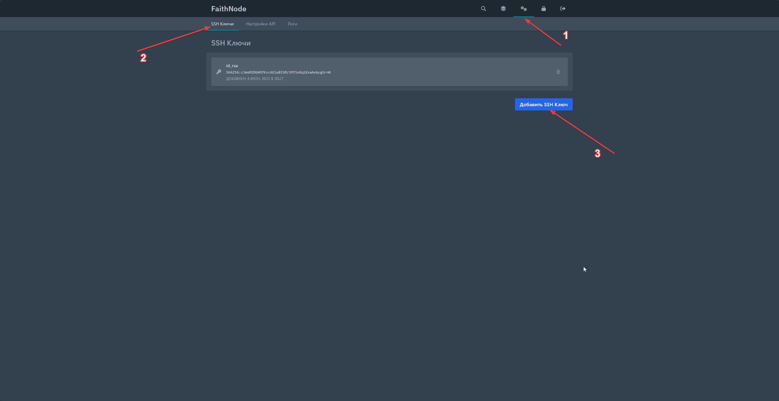 3. Добавляем SSH ключ на Pterodactyl панель: