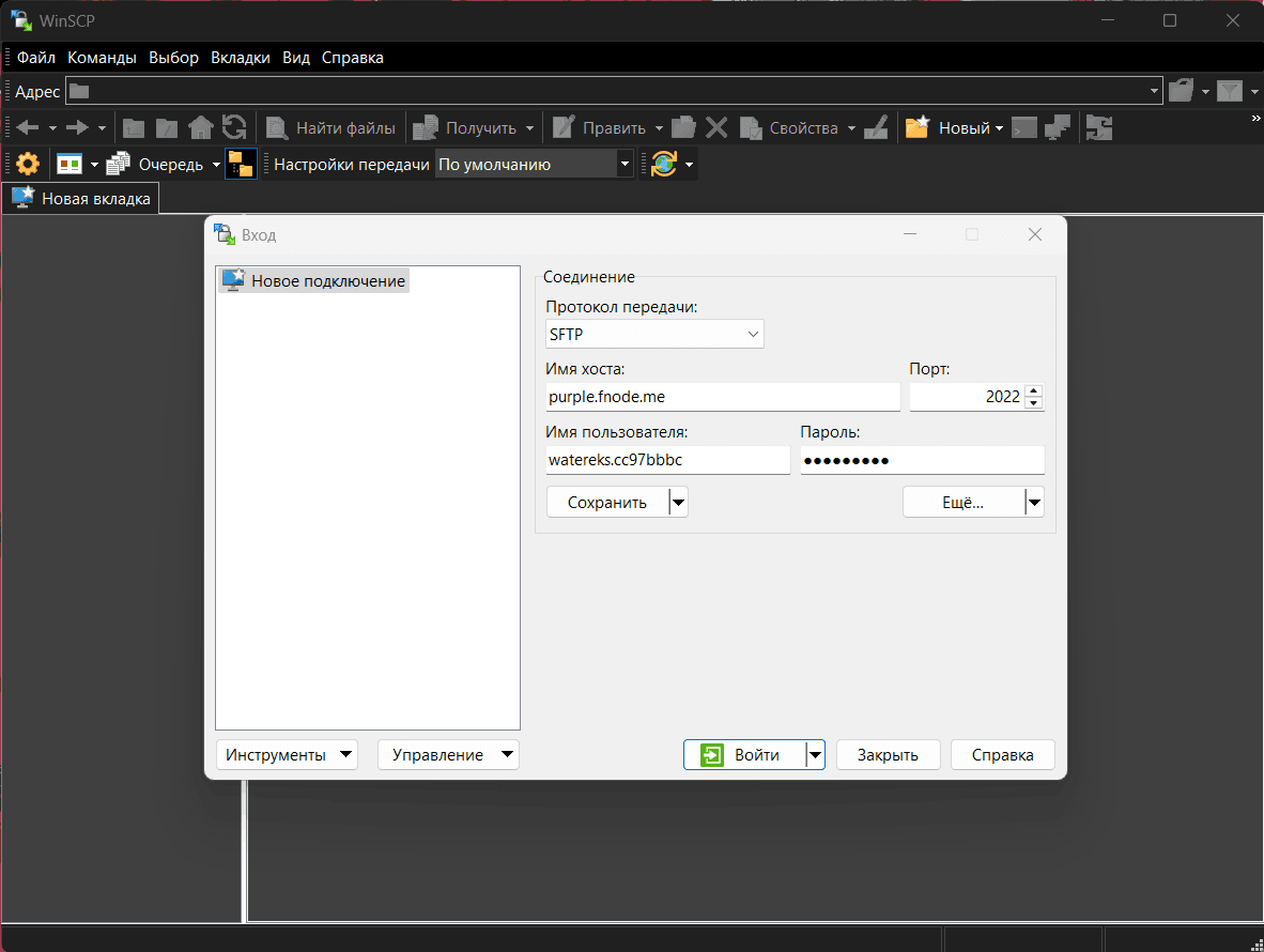 Подключение к серверу по протоколу SFTP через WinSCP